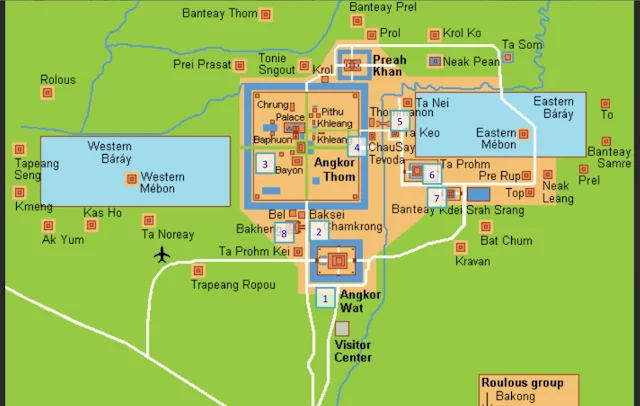 | The World Heritage Site Map of Angkor Archaeological Park in Siem Reap Province of Cambodia |